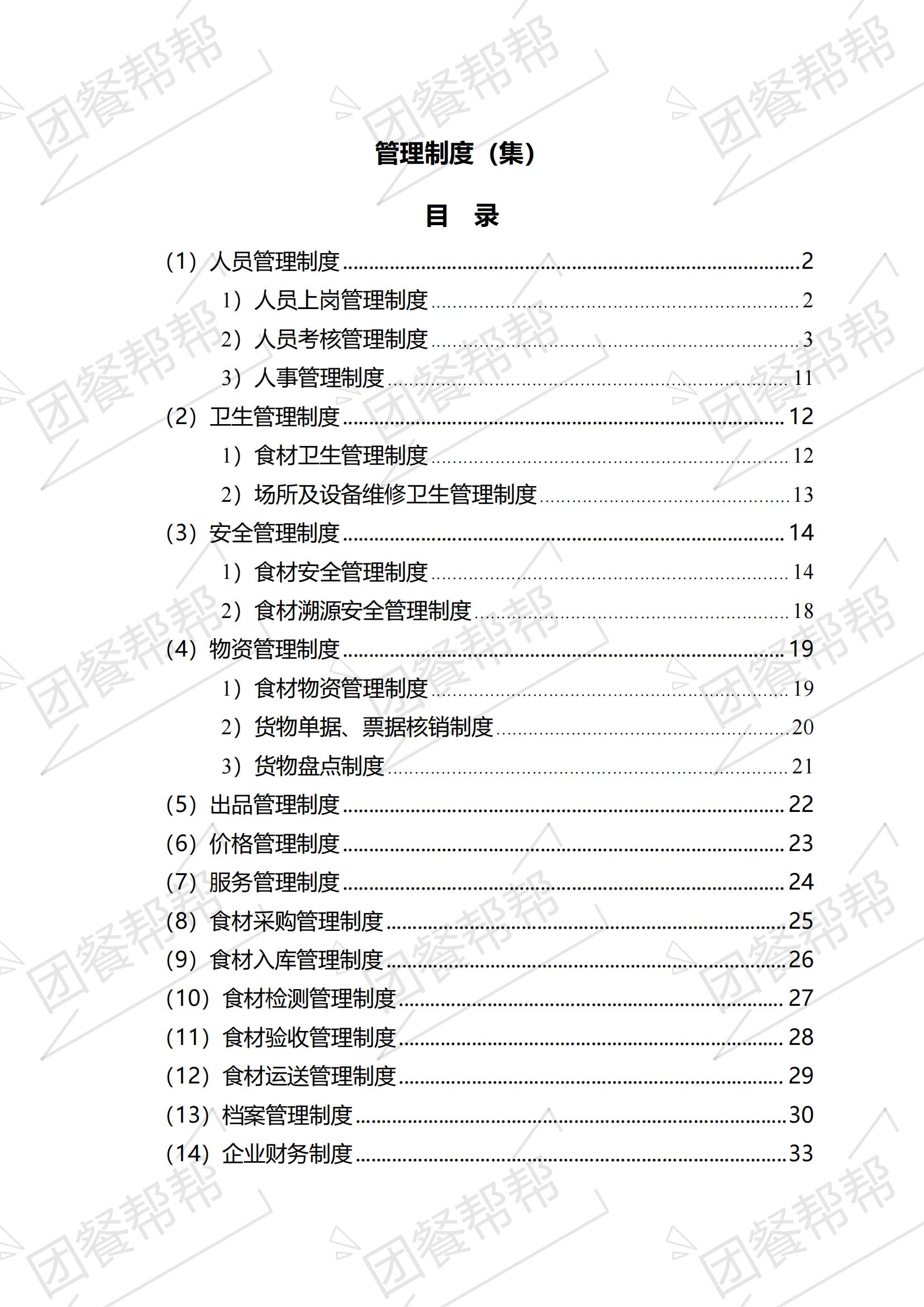 人员制度,卫生制度,安全制度,物资管理制度,出品制度等。